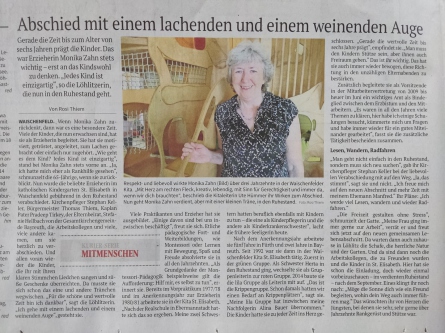 In einer Feier mit den Kindern, Vertretern der Stadt, der Trägerschaft, den Eltern und weiteren geladenen Gästen würdigten wir das jahrelange Engagement der beiden „Powerfrauen“, wie sie in einem Zeitungsartikel genannt wurden.