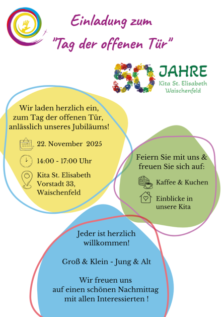 Für das nächste Kita-Jahr 2023/2024 findet die Anmeldung für Krippe und Kindergarten in der Kath. Kita St. Elisabeth in Waischenfeld vom